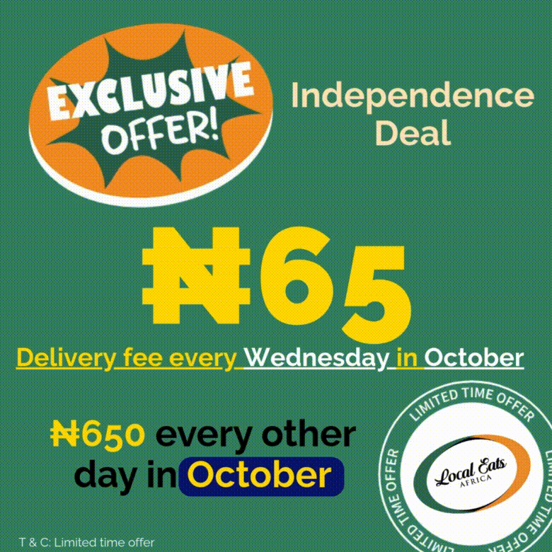 🎉 Celebrating Nigeria @65 🎁 ✨ Every Wednesday in October → Pay only ₦65 delivery fee ✨ All other days in October → Delivery just ₦650 🎉