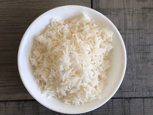 Freshly prepared white rice with beef