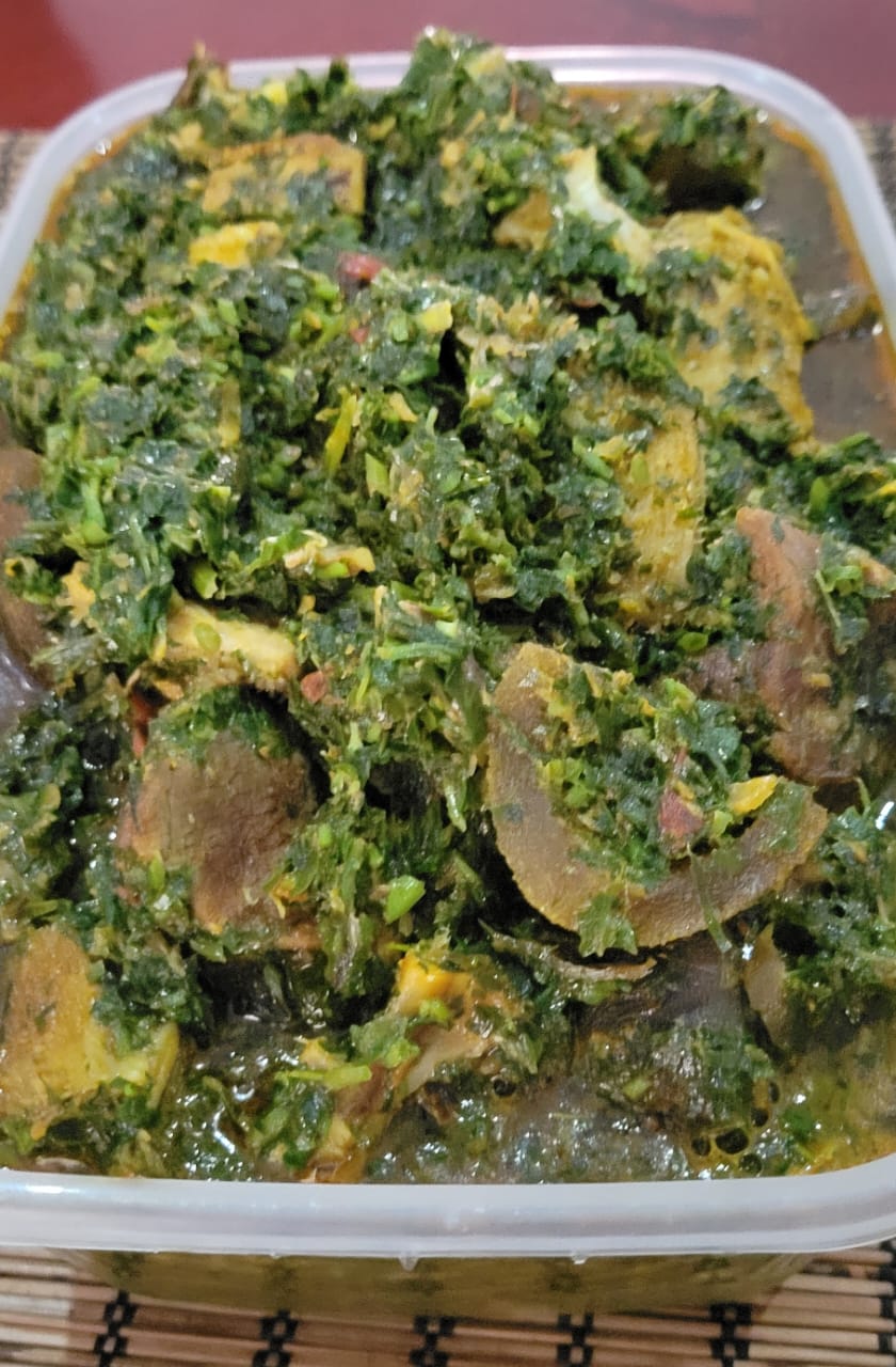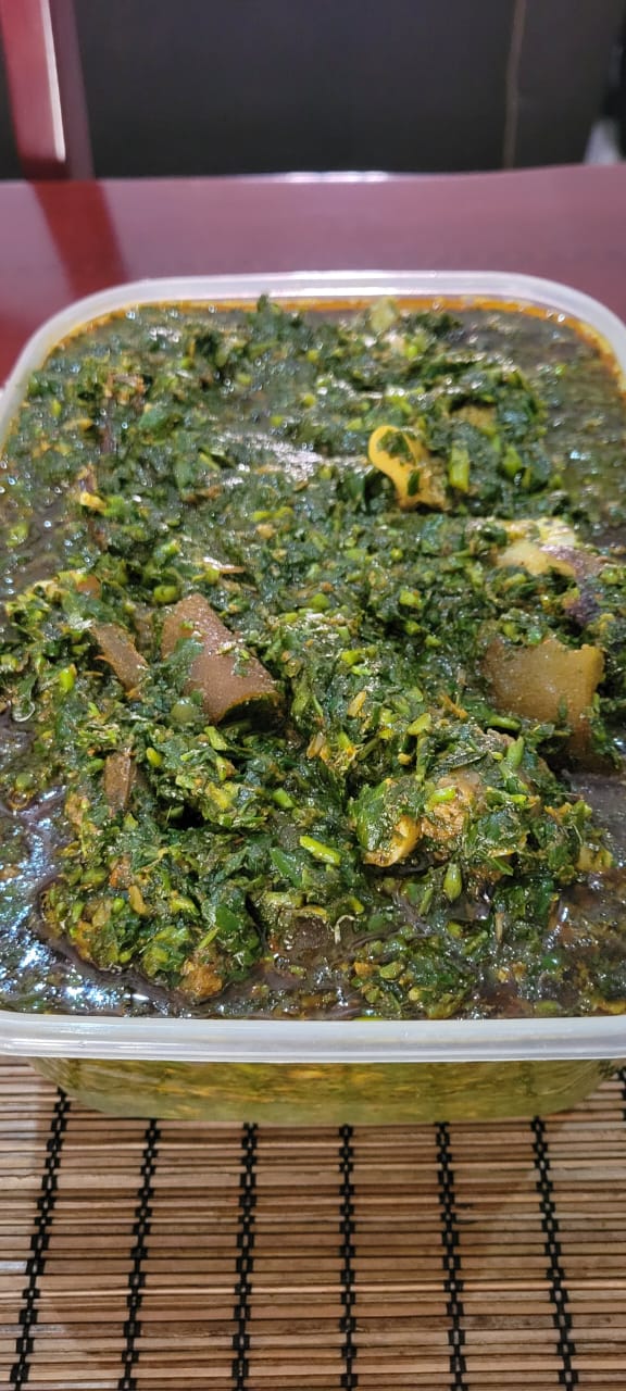 1 Plate of Afang with Eba and 2pc of medium beef
